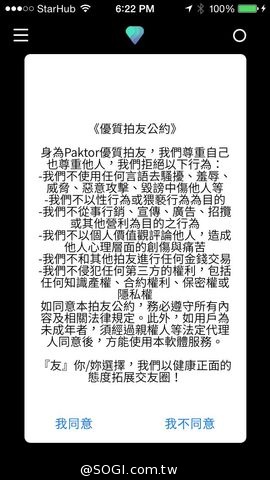 此外,為提供 Paktor 會員一個安全有保障的交友平台,同時建立健康交友觀念與環境,Paktor 首創「優質拍友公約」。當用戶下載 Paktor app 時,需同意簽署「優質拍友公約」,並遵守相關規定,包含對於用戶的言語、行為、隱私等面向之規範,提倡用正面健康、相互尊重的態度拓展交友圈,與他人交流!