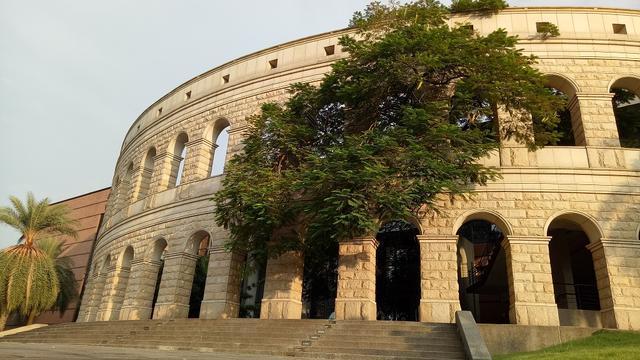 外觀是以羅馬競技場的方式下去設計的,而裡面是體育場(籃球場+羽球場)