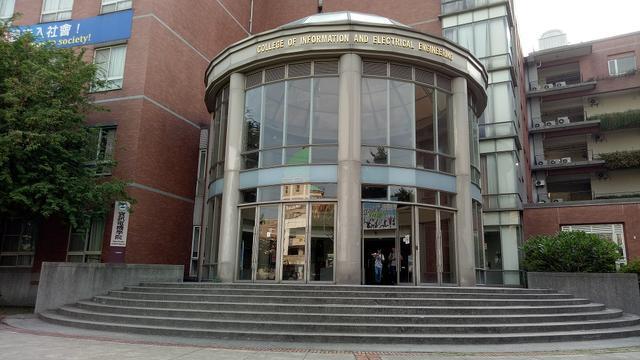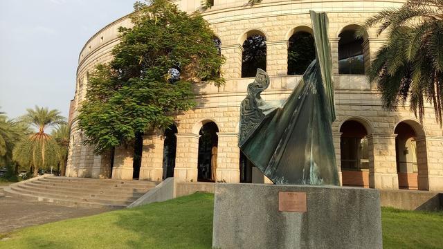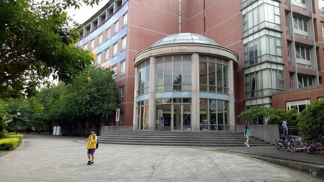 而他的左側是人文大樓(兩棟連在一起是同一棟)