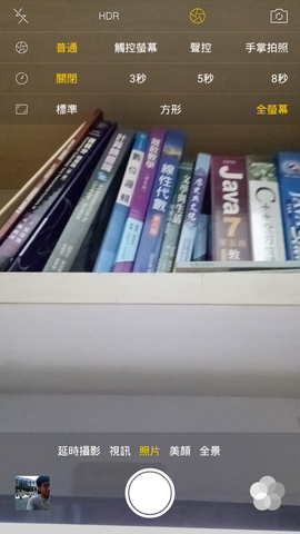 上面閃光燈->HDR(開關)->基本設定->前後相機對調