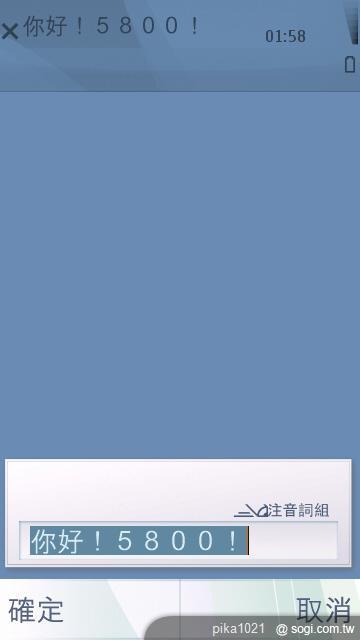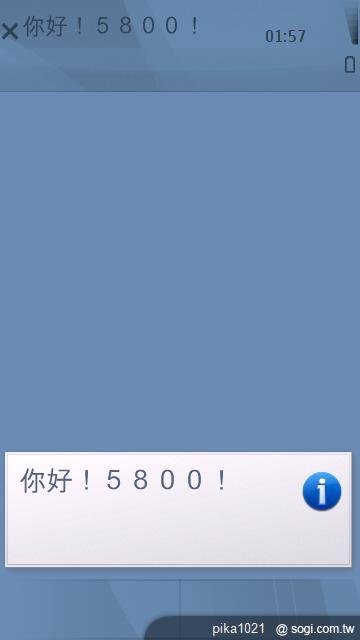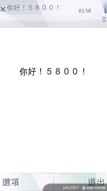 1.00(0)←我還不知道怎麼改這個= =版主終於完成了第一個Series60手機上面跑的軟體了(編按:其實之前還有...不過太爛了略過)軟體名稱:你好!5800!(無誤)開發者:V字龍軟體開發組版本:1.00(0)←我還不知道怎麼改這個= =支援平台:Series60 第三版(理論支援)Series60 第五版(5800以外機型理論支援)Symbian^3(理論支援)實現功能:->事實上沒實現啥功能(都是修改SymbianSD..........恕刪