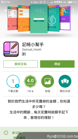 1. 推薦App名稱:方便帳本 wigrt記帳援
