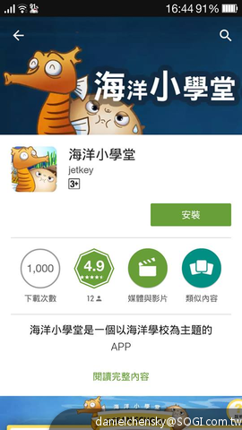 3. 推薦理由:以海洋學校為主題的APP,透過動畫故事,教到瀿海洋生態的知識。