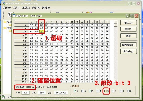 2.修改 0032_0001.seem Hex:22 bit 3 的設定來變更換卡後保留或不保留簡訊