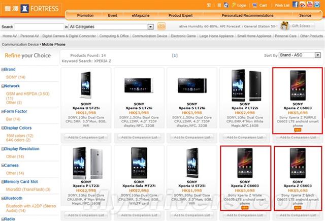 此前亞馬遜中國(Amazon.cn)購物網站曾短暫出現 Sony Xperia Z LT36h 黑色款式的訂購頁面,單機售價人民幣 4,699 元起(約新台幣 22,096 元),而類似的事件近日又出現在一家名為「豐澤」的香港零售網站,該網站列出的 Sony Xperia Z 手機為支援 LTE 網路的 C6603 型號,空機售價為 5,698 港幣(折合約為新台幣 21,495),提供白、黑、紫 3 種顏色款式。如同先前亞馬遜中國購物網站事件一樣,該頁面售價資訊在短暫出現後目前已被豐澤零售網站撤銷,不過香港 Price 網站目前還存有該零售網站提供的 Sony Xperia Z C6603 空機售價的頁面。Sony Xperia Z 將於今年第一季在台灣推出,台灣版本 Sony Xperia Z C6602 已於 1/22 通過 NCC 審驗,預計在台灣上市的時間應該不遠了。