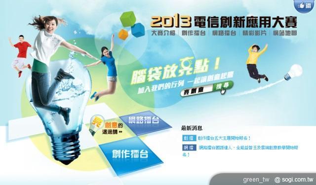 「2013 電信創新應用大賽」正式盛大開跑,「創作擂台」與「網路擂台」自即日起開放報名,詳情請見活動官網 http://innovation.hinet.net。中華電信邀全民站上雲端創新數位舞台,挑戰高額獎金,體驗數位未來無限可能,一起讓創意起飛!