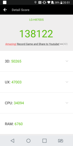 安兔兔跑分成績也是艦機的等級,玩遊戲、剪接短片…等等效能都能輕鬆應付。