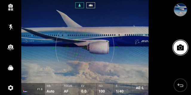 G6相機專業模式中,可以調整白平衡、AF/MF、EV、ISO、S(1/3200~30秒)