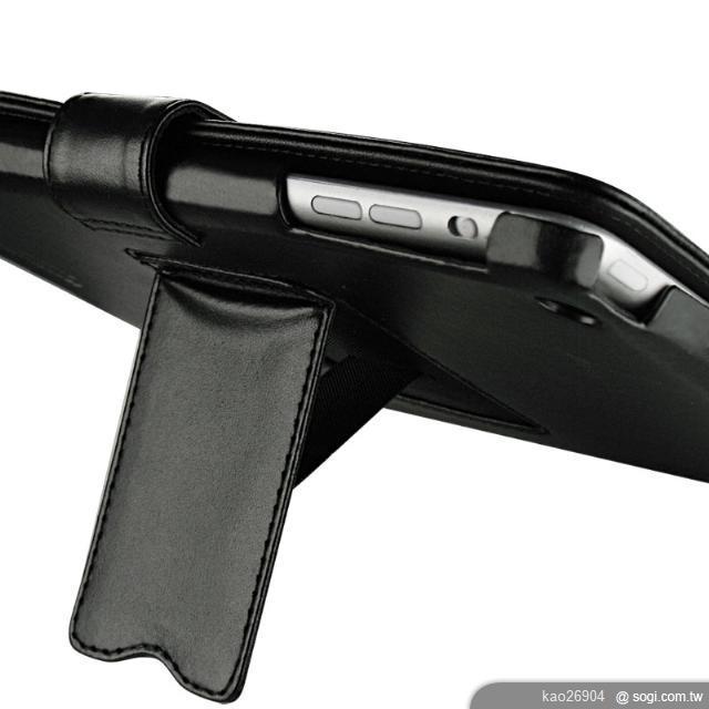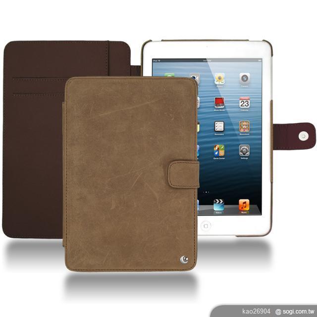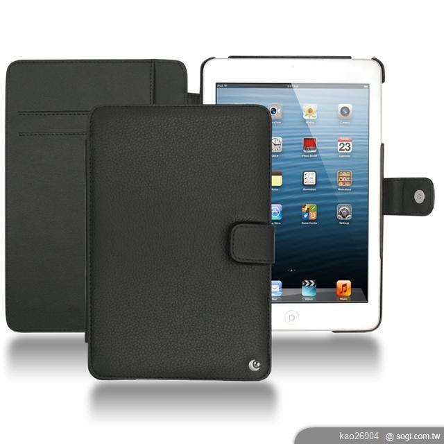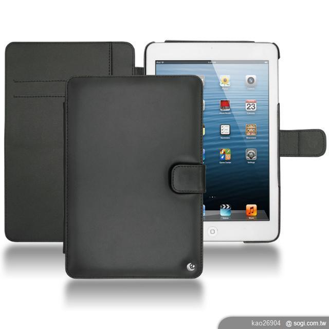iPad mini專用真皮皮套可站立,並具有休眠喚醒功能,書本式設計內部並附有文件夾層。