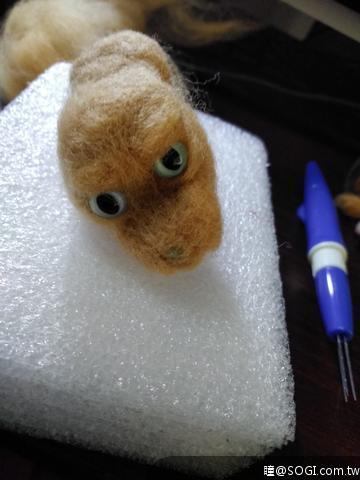再來是植毛,把鬃毛上上去(這裡要跟大家說對不起,因為買錯羊毛,所以鬃毛的顏色不太像,大家就將就一下XD)