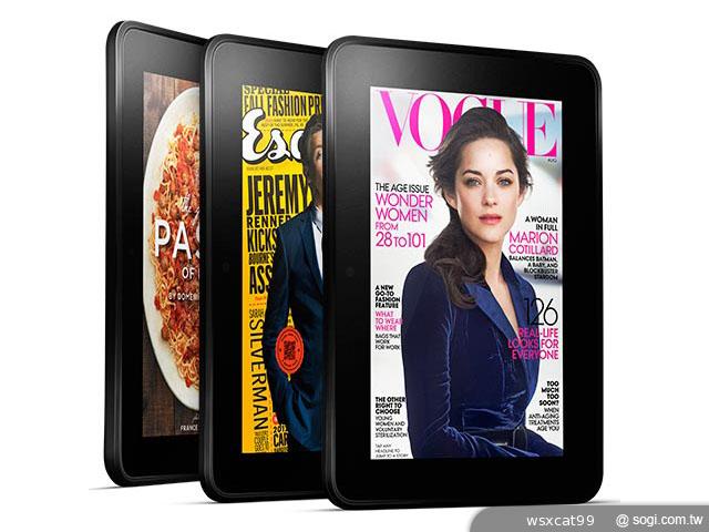 ▲擁有 7 吋,1,280 x 800pixels 解析度的 IPS 觸控螢幕的 Amazon Kindle Fire HD 7,搭載 Android 4.0 Ice Cream Sandwich 作業系統,內建 TI OMAP4460, 1.2GHz 雙核心處理器、1GB RAM 與 16GB / 32GB ROM 記憶體容量。