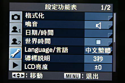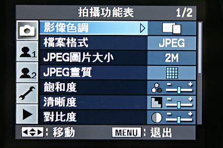 這個是按下『Menu’’鍵後,分別出現的五頁資訊欄,對小編來說感覺真的有些繁覆,喜歡這種介面的使用者應該也是不少。感覺有點走向專業單眼的介面分類,不過,小編還是喜歡在相機上直接進行操作設定。