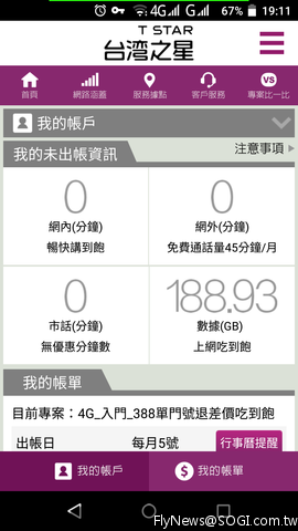 我是台灣之星388吃到飽,限速21M,免費45分網外完全沒用到~~~!