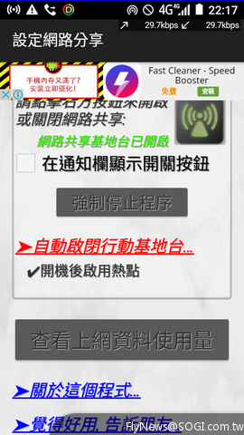 4. 因為有設定時重新開機,要安裝網路分享(免費版)這個APP ,重開機後才能自動開啟基地台