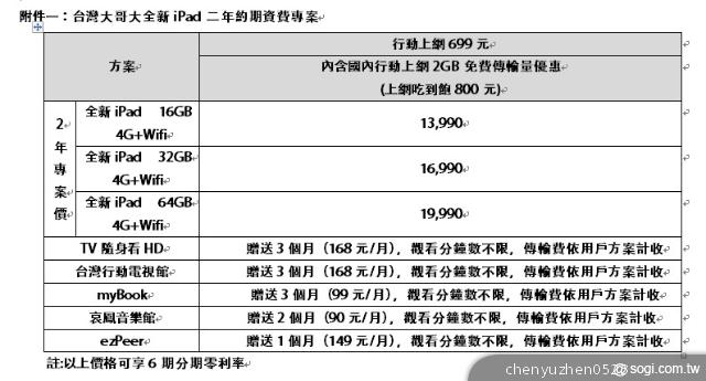 ▲台灣大哥大全新iPad二年約期資費專案
