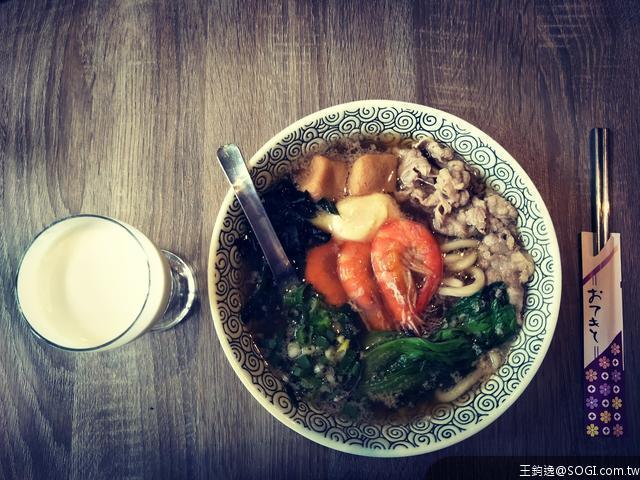 杏仁茶 鮮蝦雪花牛手打麵 歌德風格濾鏡 點我看原圖