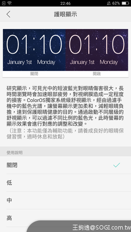 這次還新增了可調節的護眼顯示功能,手機重度使用者平時一定要開啟,眼睛才不會那麼酸,但拍照時要記得關掉,否則沒辦法觀察物體實際的顏色。