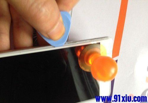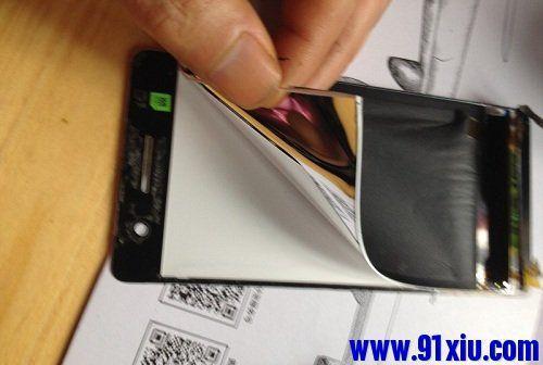 11、處理一下四邊的殘膠,還要注意不要留下灰塵,新背光片,撕掉白色一邊的保護膜。