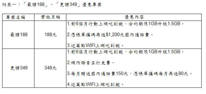 第二大好康:更讚 349 月付 349 元,網內語音免費,還享前六個月行動上網吃到飽。