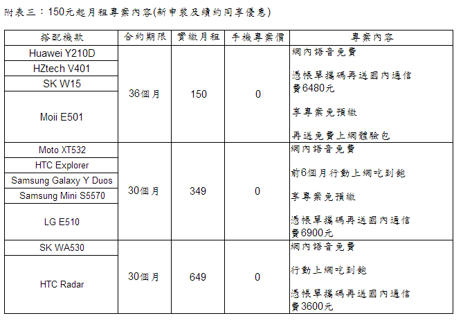 第四大好康:月租 150 元起,多款品牌智慧型手機只要 0 元。