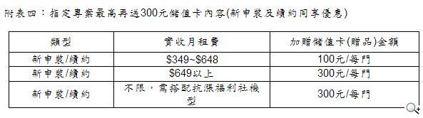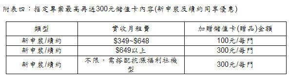 第五大好康:指定專案最高再送 300 元儲值卡。