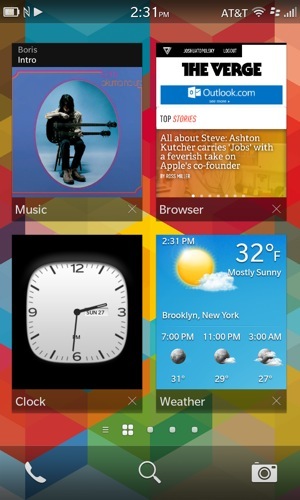 ▲左圖顯示 BlackBerry Z10 桌面可放置 4 x 4 共 16 個 icon;右圖則展示螢幕主介面可以快速管理執行中的應用程式,最多支援同時運行 8 個 App。(圖片來源:The Verge)