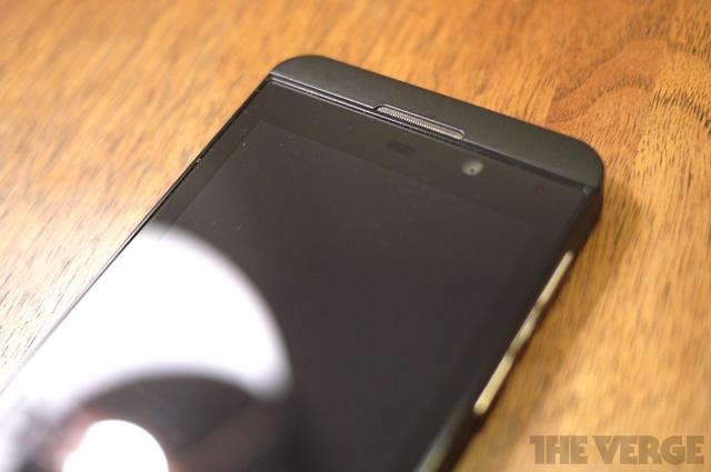 ▲BlackBerry Z10 螢幕上方內建 200 萬畫素前置相機、聽筒揚聲器及感應器。(圖片來源:The Verge)