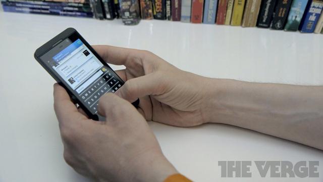 ▲BlackBerry Z10 內建黑莓虛擬鍵盤,貼心的輸入法設計,系統也會記憶用戶常用的詞字,將其列為下次輸入的建議詞之一,用戶輸入的過程中預測單詞將會顯示在字母上方,方便用戶編輯文字。(圖片來源:The Verge)
