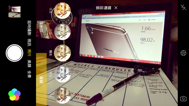 左右扭一下居然自拍也可以全景耶,超強大的,有點類似之前可以夾在鏡頭外面的廣角效果,居然R9內建在裡面!朵花們快玩玩看阿(呼朋引伴中….)