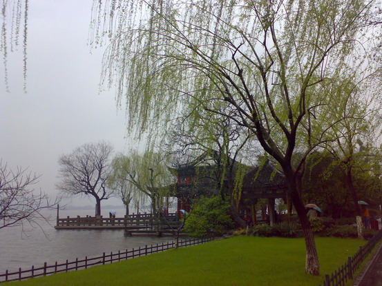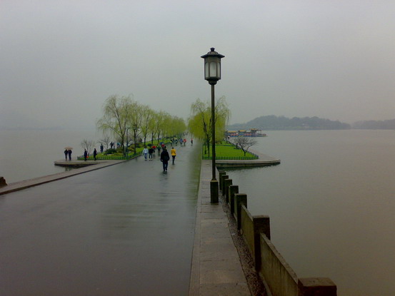 (去西湖時正好下起雨,氣溫0度吧,拿N73的手都沒知覺了,頭上頂著傘呢)