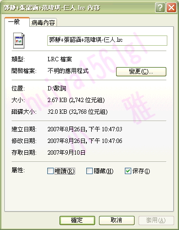 歌曲檔名後面不用加lrc副檔名,因為這是歌詞的副檔名。