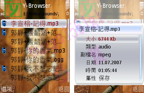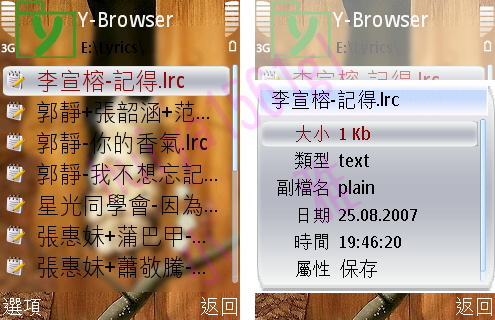 分別儲存於E:\lyrics和E:\Nokia\Sounds資料夾