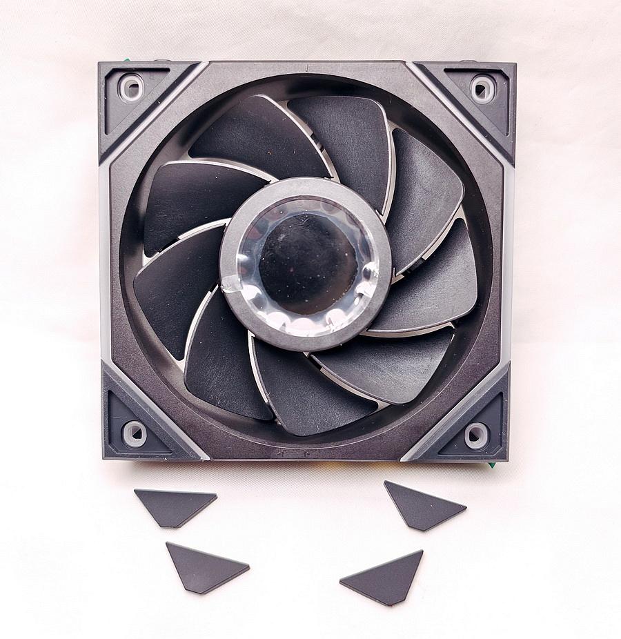 風扇的正反面在四個角落都有可拆卸的減震橡膠墊片,可降低噪音也可兼顧美觀。