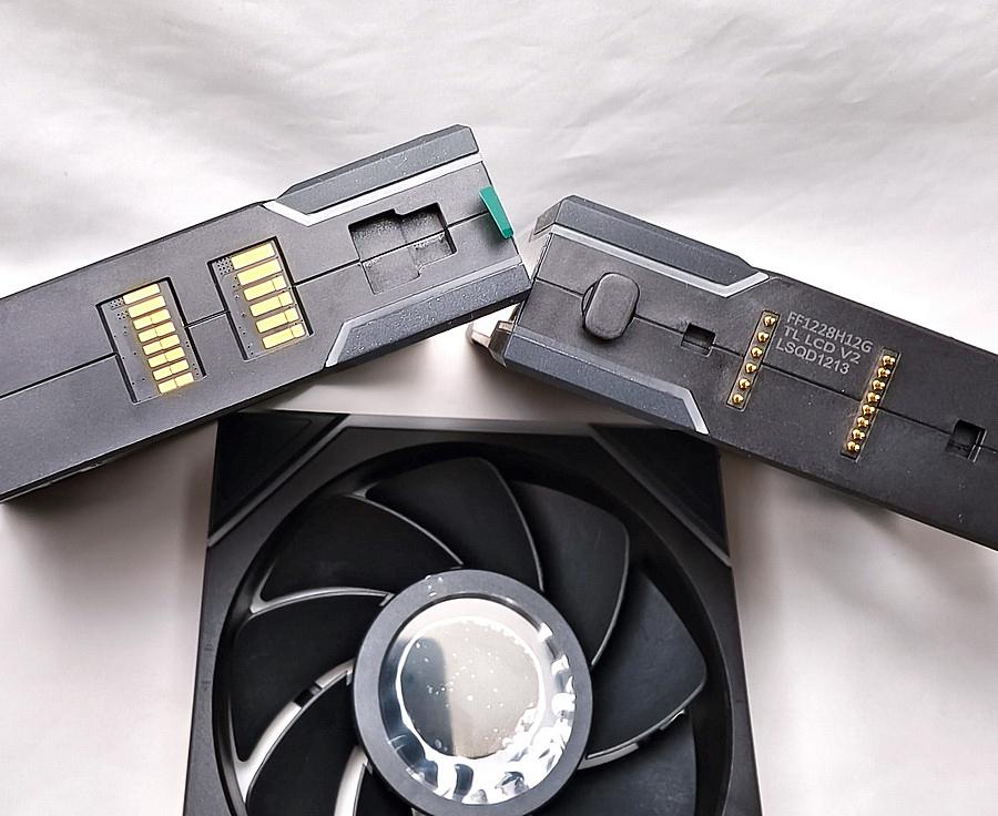 UNI FAN TL Wireless LCD 120 採卡扣設計,可以很方便地將風扇組合在一起,共用電力與資料傳輸線材。