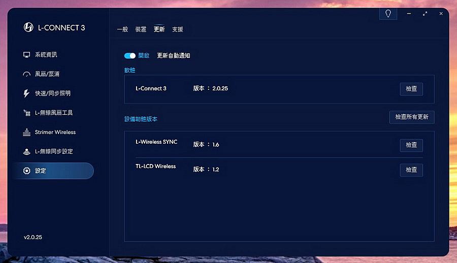 主機板插上 L-無線控制器 之後,L-Connect 3 介面立馬出現非常大的變化,可以調整跟設定的選項就全都出現了。