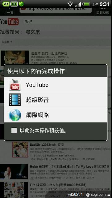 剛開始點選影片實應該會跳出讓你選擇網際網路或是Youtube吧?