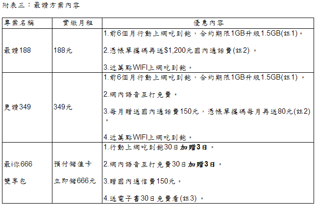 「最讚 188」、「更讚 349」免費傳輸升級 「最 i 你 666」雙享優惠