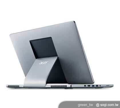 宏碁 5 月 3 日於紐約推出革命性觸控筆記型電腦 Aspire R7,螢幕為 15.6 吋,具有最獨特且符合人體工學的雙軸承"Ezel hinge",如同畫架一般的設計概念,可調整螢幕的角度、位置並翻轉,依使用者的不同需求,呈現四種使用模式(筆電 / 觸控 / 分享 / 平板),提供消費者得心應手的「觸打雙用」使用經驗。