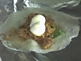 這個是我最喜歡吃的東西:"花生糖+冰琪淋"~是在春捲皮裡加入花生糖削、香菜、冰