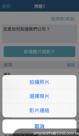 另外發問卷的管道很多,都是我們生活中常用到的,但如果剛好跟客戶有見面的話,通常我會直接讓他掃描QRcode,就可以馬上作答,然後我會在旁邊standby,適時的補充說明,這樣客戶對你的印象會比較好,也可以避免客戶草率作答