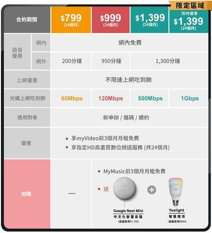 相差價格不多的話,我會選台灣大120M,有送智慧音響和智慧燈炮比較划算