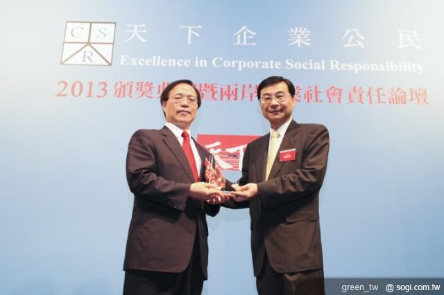 由天下雜誌主辦的 2013「天下企業公民獎」,以「公司治理」、「企業承諾」、「社會參與」、「環境保護」四大面向做為評分標準。中華電信秉承著「綠色企業、數位雨林」的企業精神,積極落實及內化企業社會責任,從 2006 年成立企業社會責任委員會以來,完成電信業第一次溫室氣體盤查、莫拉克颱風緊急救災及重建復興、發行企業社會責任年報……等無數個里程碑。