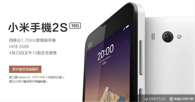 ▲小米科技香港官網近日消息,小米 MI 2S 16GB 將於 4 月 23 日 12 時正式發售,空機售價 2,499 港幣(折合新台幣約 9,598 元)。