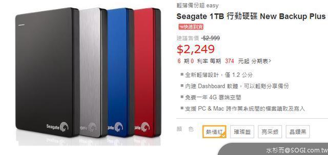 價格優勢:以每 GB 儲存成本計算,相較於市面上提供之雲端儲存服務,希捷旗下的 Seagate Backup Plus 系列硬碟產品價格相當具競爭力。平均而言,100GB 的雲端儲存空間花費相當於一年新臺幣 2,997 元,價格遠高出容量達 10 倍的 1 TB Seagate Backup Plus Slim,售價新臺幣 2,399 元。