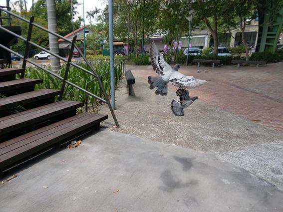 天氣非常好的宜蘭,在廣場中有成群飛舞的鴿子,利用手機中超高速的連拍功能,