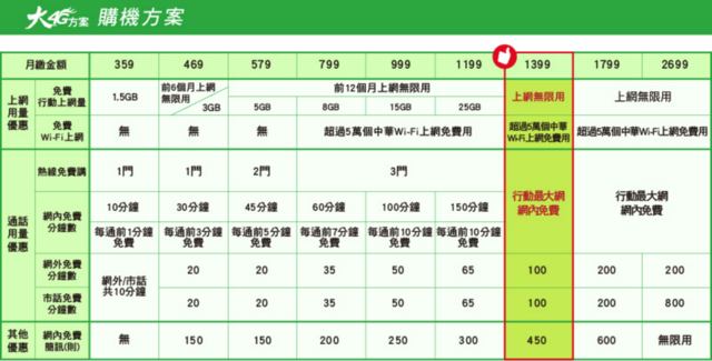 最適合的就是中華本身的大 4G 方案 1399 型囉~