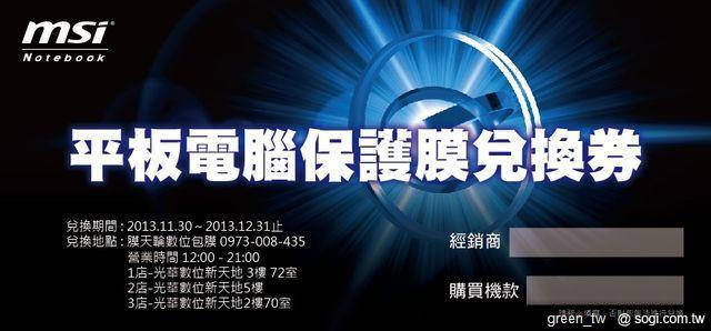 現場凡購買微星全系列平板,即可獲贈免費的平板電腦保護膜兌換券!大家請把握機會,不只有機會搶到超值優惠產品,還有遊戲片等好康等你來拿!