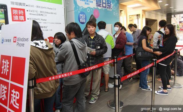 全台關注度最高的 Windows Phone "Mango"新機首賣會台北站前南陽街登場!台灣微軟祭出總價值超過 10 萬好禮,當日購機即可獲得獨家「磚屬禮盒」,現場前三名 HTC TITAN 或 Radar 購買者立即免費再贈送 HTC Radar 手機、第四至第七名購買者可將 XBox 360 主機免費帶回家,現場凡購買 Windows Phone 消費者可立即參加 HTC Radar 獨家好禮限時抽,僅此一天的機會,讓現場粉絲熱血沸騰,買氣強強滾。