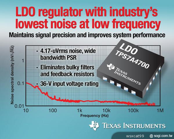 德州儀器推出業界低頻率下最低雜訊 LDO 線性電壓穩壓器