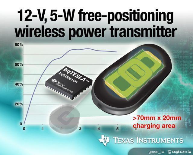 德州儀器(TI)宣佈推出首款單晶片無線電源接收器,整合電池充電器與全新「自由位置」(free position)發送器積體電路,將充電面積擴大 400%,使無線電源得以實現。該兩款 bqTESLA™ 電路不僅為智慧型手機使用者提供更簡單方便的充電體驗,還可幫助設計人員在更多裝置上實作無線電源技術,包括汽車監控平台(automotive console)、充電板與辦公傢俱(office furniture)等。詳細產品資訊及訂購樣品與 bqTESLA 開發套件,請參見網頁。